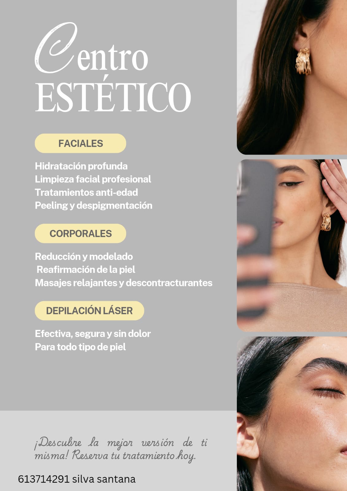Tratamientos de masaje terapéutico y terapias complementarias, además de una variedad de servicios de estética: manicura, pedicura y depilación. Masajes